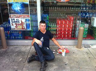 The night before Dovid decided to connect up LED's to his motorcycle and we assume that it tempered with the electricity connections. Even though in the morning the bike did start up and ran for a few minutes, it didn't have enough power after idling at the gas station. We weren't sure what to do so we decided to connect up my battery to his to jump start it. We waited 10 minutes for my battery to charge his, which was a huge mistake cause after that was done not only did his bike not start, mine was dead too! the situation was more irritating than ironic even though it sounds more funny that it is. Now we had two bikes down and it was already 11:00 am, which put us way off schedule. We had Uri, with the last working bike, ride to the Auto Zone store to charge up the dead battery and buy an external jump starting kit.
