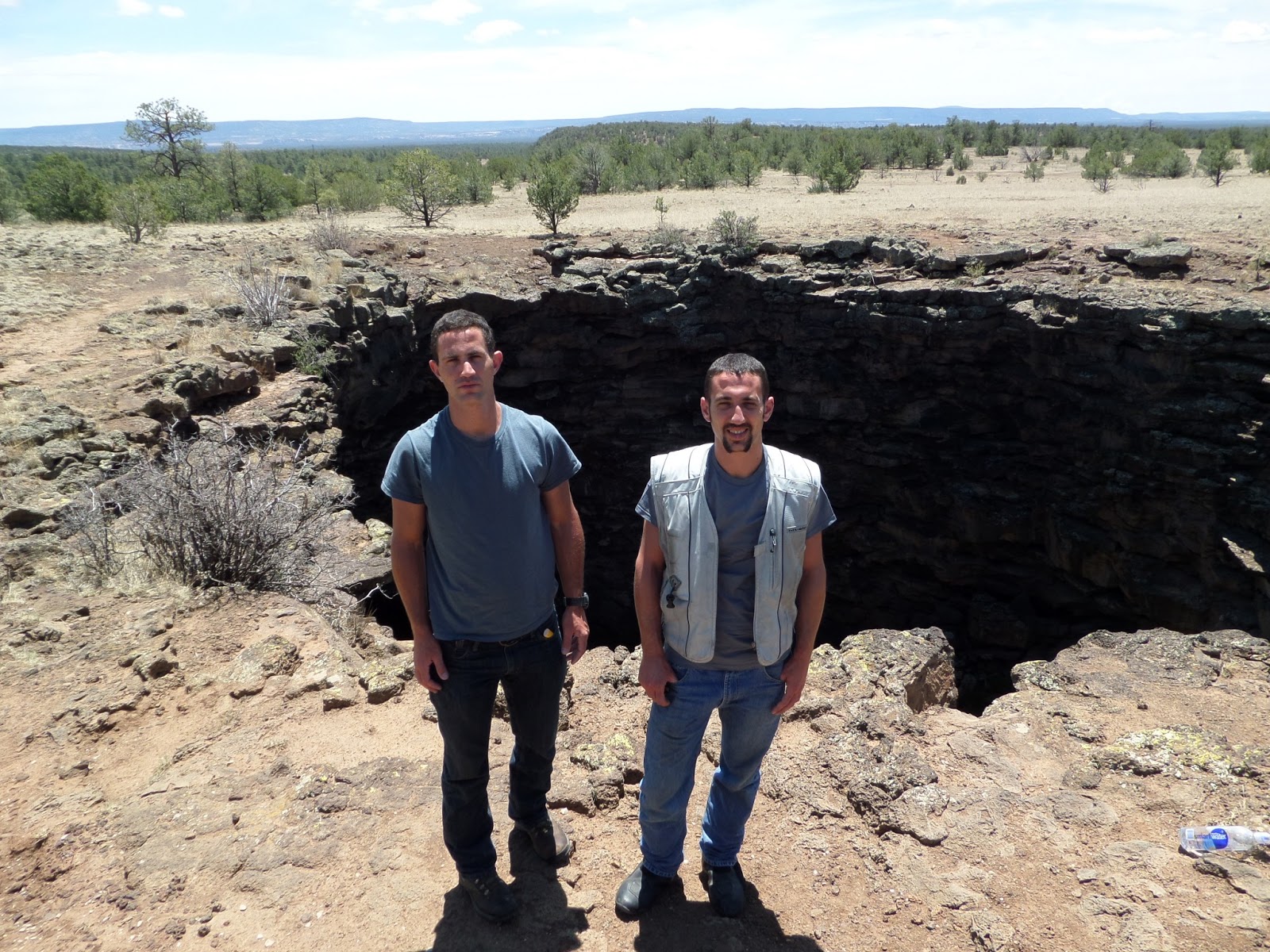 Uri and I talked to the Owner of the campsite and learned a lot about the Acoma and Navajo Indian tribes who live in the area. He explained to us the whole story of how the native Americans came thousands of years ago from Mongolia, and as of today are spread out along North and South America. Later on we went on an hour hike to El Malpais (the "badlands") which got their name from the Spanish king who came to the area in the early 16 hundreds and couldn't pass the rugged terrain with his army. The land has a few large plateaus on which one of them reside the Acoma pueblo (Spanish: village). The rest of the terrain consists of lava rock and large caves which developed due to the solidification of the lava along the years.