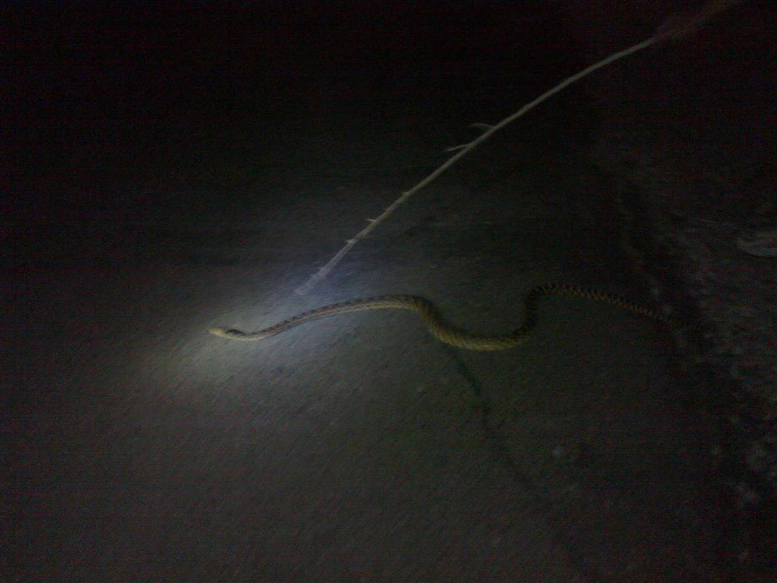The roads down south aren't maintained as well as the ones up north, so the ride is a bit more bumpy, but so far it has not affected us nor the bikes. We arrived by dark at the second campsite and were welcomed by the owner who kindly gave us cookies. The KOA's are privately owned and to acquire a license they have a minimal amount of amenities which are decided by the organization. We pulled in a parked and noticed a huge snake right near our campsite. It looked very terrified so the owner cautiously scared it away. We got some pictures and met some other curious campers too. We were introduced to this one traveler that came all the way from Denmark to tour North America on a KLR 650. He is a lot older than us but because we both are doing the same adventure, we had a lot to talk about.
